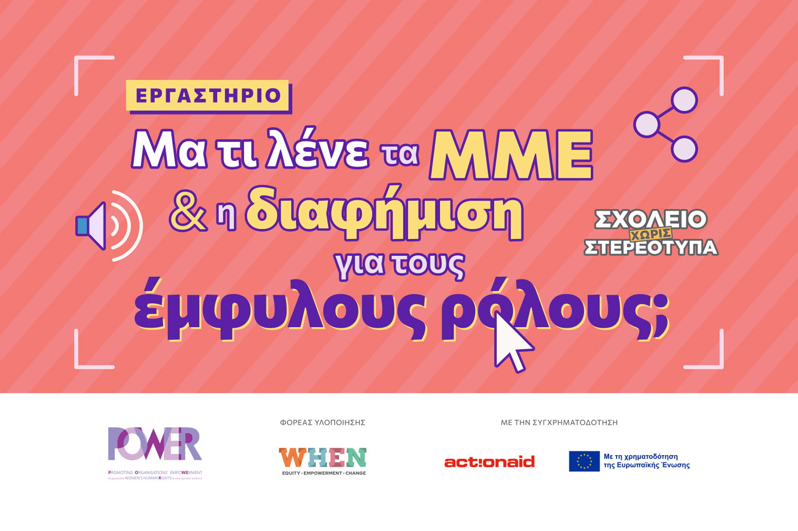 Στο πλαίσιο του “Σχολείου χωρίς Στερεότυπα | Μα τι λένε τα ΜΜΕ και η διαφήμιση για τους έμφυλους ρόλους;”, το WHEN θα υλοποιήσει 10 εκπαιδευτικές επισκέψεις σε σχολεία σε όλη την Ελλάδα τους πρώτους μήνες του 2026, με στόχο την ενδυνάμωση μαθητών & μαθητριών, ώστε να στέκονται κριτικά απέναντι στα στερεότυπα και να λειτουργούν ως φορείς αλλαγής.